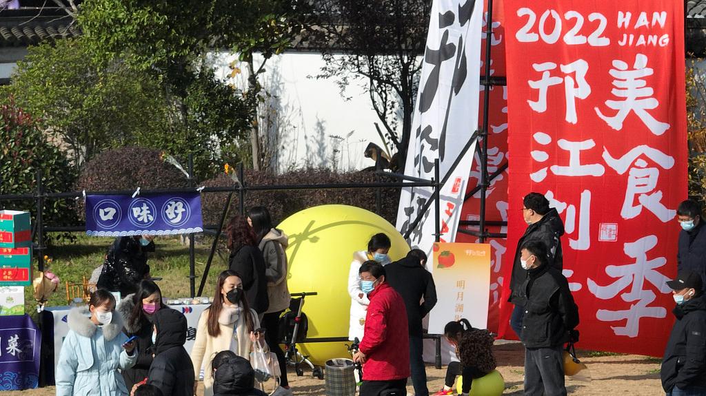 2022年12月11日,江苏扬州,冬日时节,在竹西公园举办的创意美食市集游人熙攘、热火朝天,游客在园内休闲游玩、品尝美食。 视觉中国 图