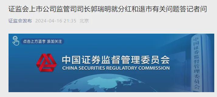 当天晚间,证监会官网发布,证监会上市公司监管司司长就分红和退市有关问题答记者问。