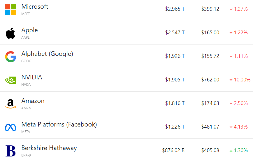 日内,另一家“AI风向标”微软收跌1.27%,市值跌破了3万亿美元;苹果跌1.22%;谷歌C跌1.11%,超越英伟达回到了“美股第三”。
