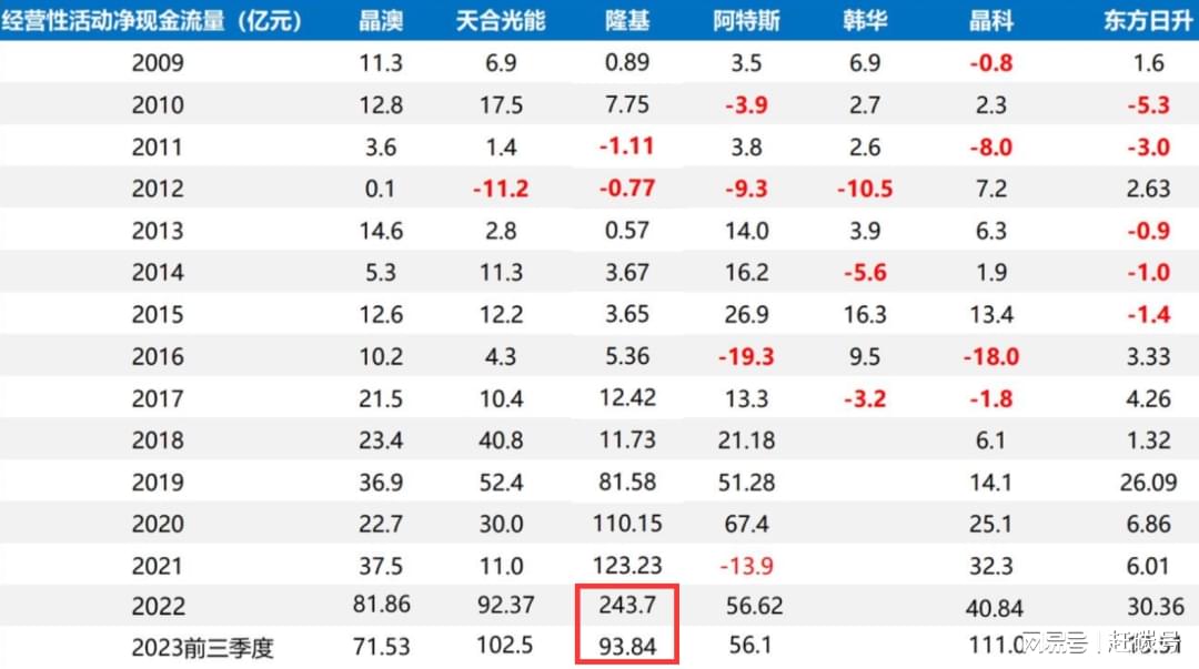 隆基绿能2023年度和今年一季度的业绩表现究竟如何?投资者们都在等着靴子落地。赶碳号在此不敢妄自揣测,但有一点,2023年前三季度,隆基绿能的经营性活动净现金流量和2022年相比,出现了重大变化。