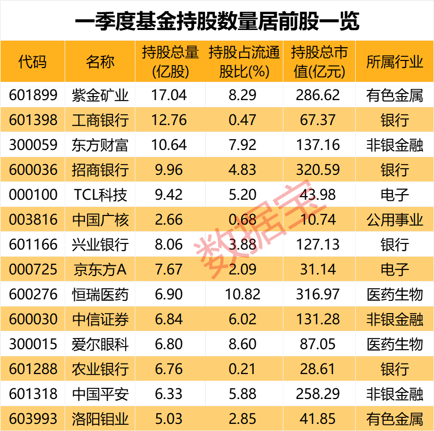 一季度基金重仓股出炉,矿业巨头获500家持仓,中央汇金间接增持