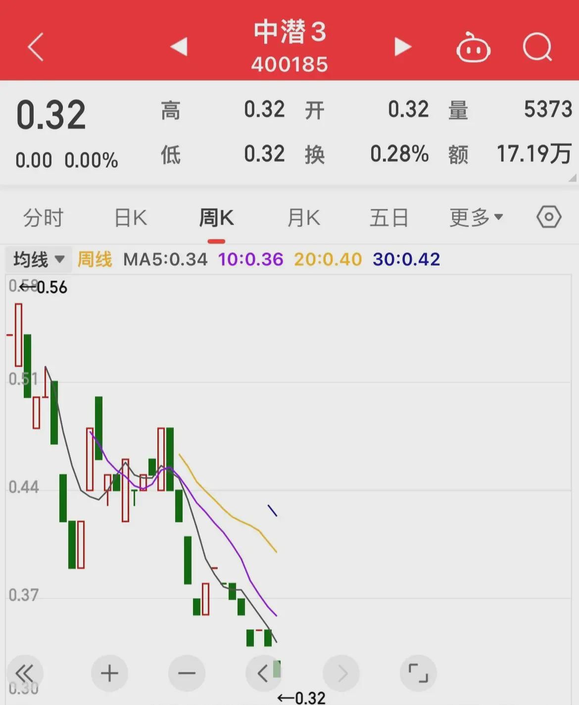 到退市的时候,高点下来跌了99.7%,说白了和跌完也没什么区别,现在的中潜股份在三板交易,但量能很小,每天就几万块钱的交易量,有时低至几千块的量。