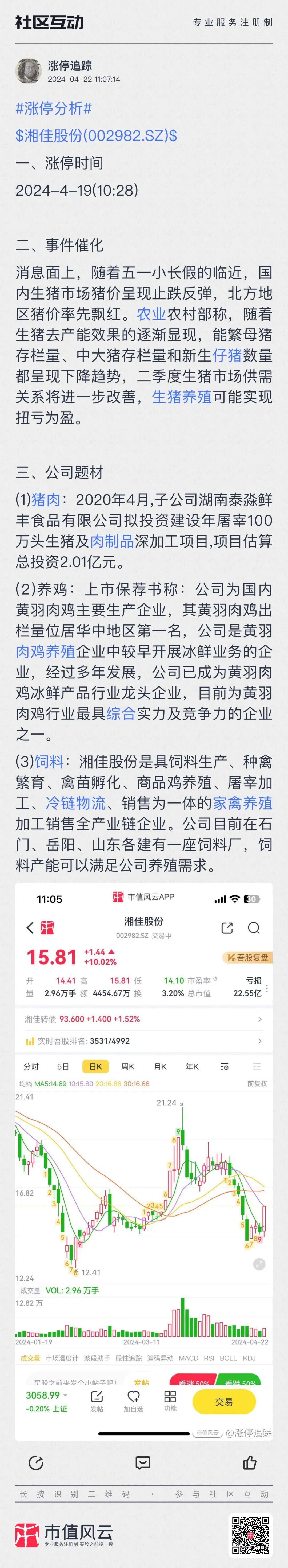 低空经济概念中衡设计和威奥股份携手晋级4连板,成为市场最高标。开盘猪肉价格走高,相加股份和邦基科技上板。