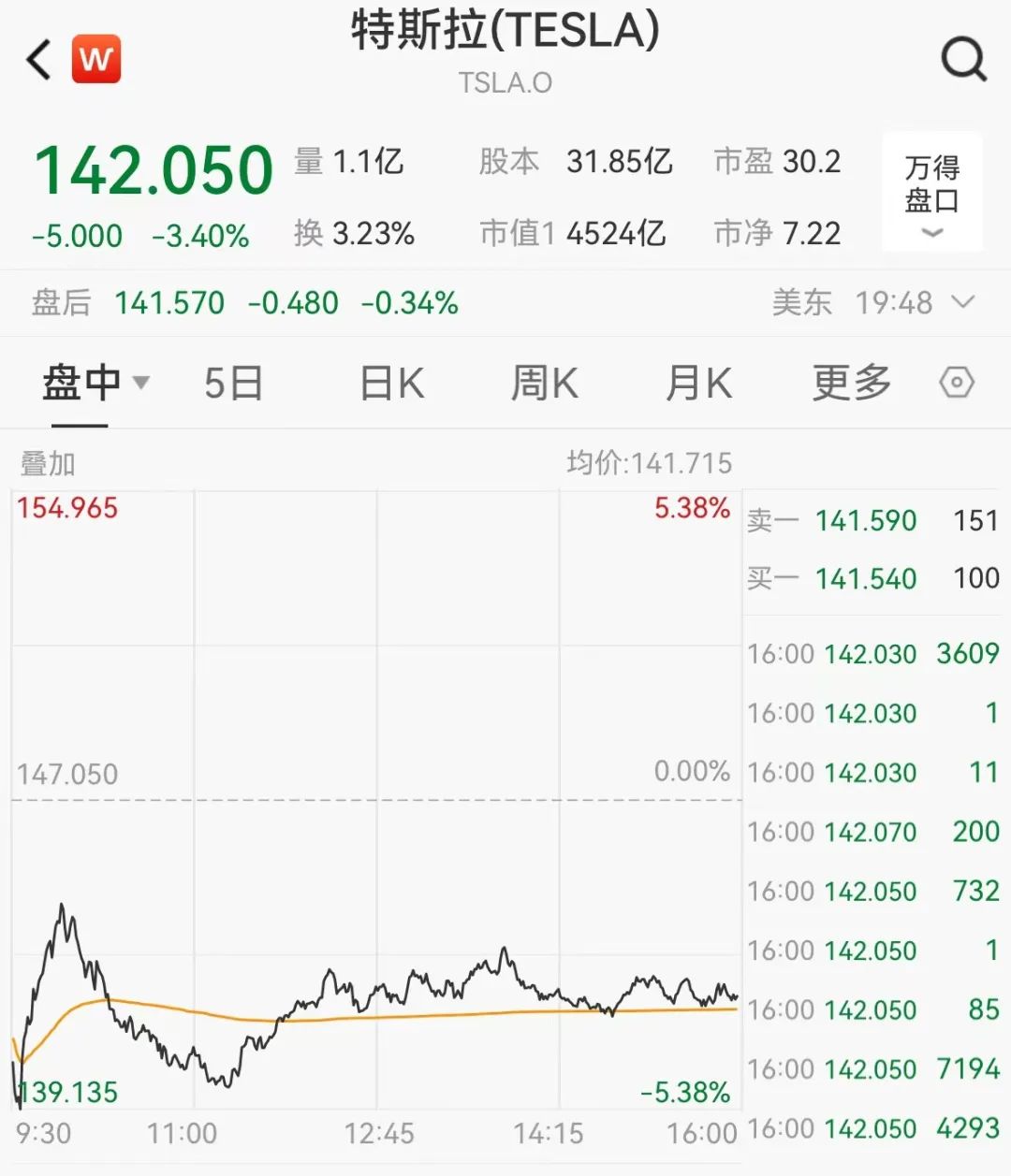 特斯拉跌超3%