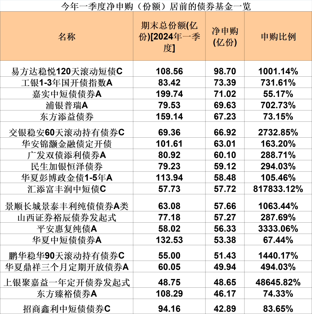 今年一季度,哪些债券基金最受投资者青睐?