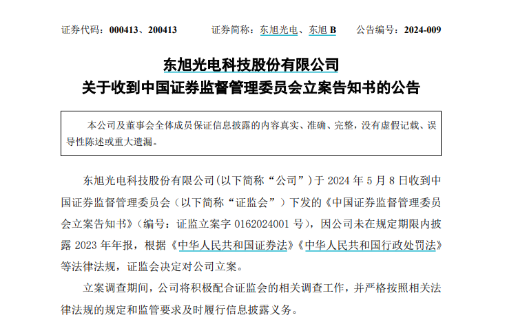 东旭光电、东旭蓝天因未按时披露年报被立案