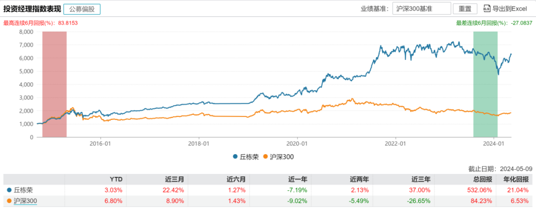 丘栋荣的市场知名度全部靠“硬核业绩”打拼出来。Wind数据显示,他在汇丰晋信基金担任基金经理时,他管理的汇丰晋信大盘股票基金在2014年9月16日至2018年4月28日期间斩获193.86%的收益,年化收益率高达34.69%。同时,他管理的汇丰晋信双核策略基金任职期间的收益率也超110%。
