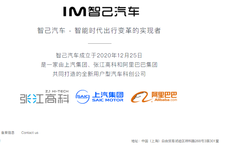 公司官网显示,智己汽车总部位于上海,是一家由上汽集团、张江高科和阿里巴巴集团共同打造的全新用户型汽车科创公司。