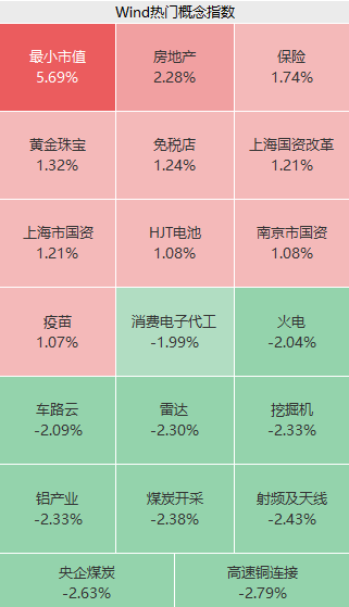 盘面上,上午房地产、保险、零售等板块表现居前,黄金珠宝、免税店概念走高;煤炭、消费电子、能源设备等不振。